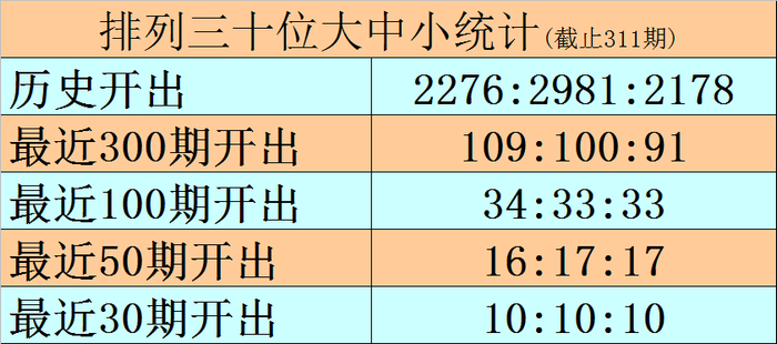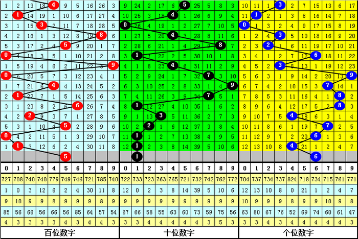 第二位3-6之间的中号开出10个,目前遗漏3期,其中号码6出现0次,目前遗漏39期;号码5出现3次,目前遗漏14期;号码4出现6次,目前遗漏8期;号码3出现1次,目前遗漏3期。